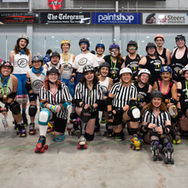 Our first bout with our new home teams, Pain Drizzle and Fog and the Wicked Whitecaps, in support of Palestine Action YYT.